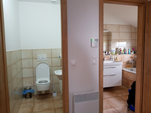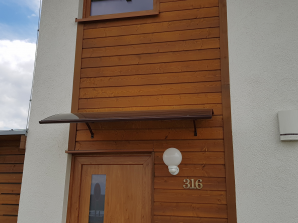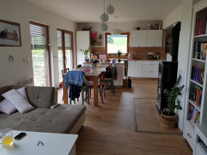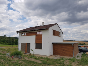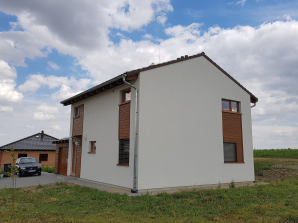 Chtěli by jste v přízemí domu Kubis 74 pracovnu nebo hostovský pokoj? Na fotkách z této realizace uvidíte, že i s touto úpravou budete mít prostornou kuchyň s jídelnou a obývacím pokojem. Také uvidíte jak to vypadá, když se v koupelně v podkroví vytvoří samostatné WC. Všimněte si i hnědé střechy, vnitřní folie na rámech oken, venkovních žaluzií, hnědé stříšky nad vchodem a stylové poštovní schránky...