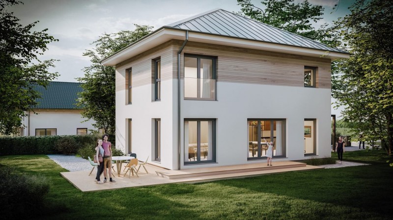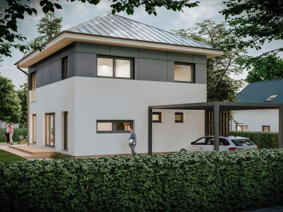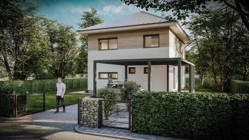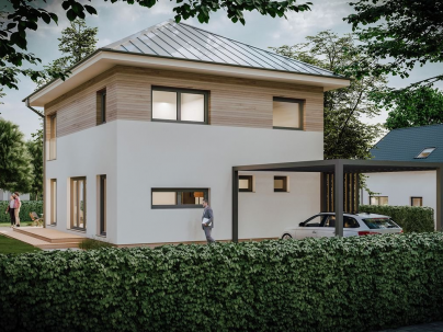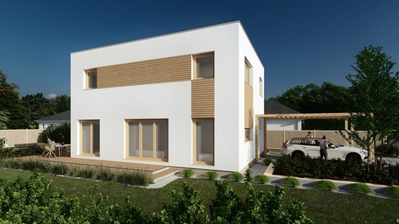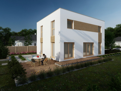 Oblíbená dispozice domu orientovaného celou obytnou částí do zahrady. Plnohodnotný pokoj v přízemí vhodný pro ložnici rodičů a tři prostorné a dobře prosvětlené pokoje v patře činí tento dům oblíbeným pro mladou rozrůstající se rodinu. Architektura domu je vhodná do města i na venkov.