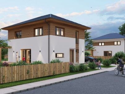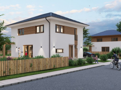 Dům Family 135 zaujme moderním designem, který je ideální také pro menší pozemky. Tento kompaktní dům nabízí promyšlenou otevřenou dispozici s velkými prosklenými plochami, které se rozprostírají přes obě podlaží, tím přinášejí dostatek světla do obývací, jídelní i kuchyňské části. Velké prosklené dveře vedou přímo na prostornou terasu, což je ideální místo pro relaxaci a společenská setkání. V poschodí se nachází ložnice s krásným výhledem a další dvě prostorné místnosti, které poskytují klid a naprosté soukromí. Tento dům dokonale spojuje moderní estetiku s praktickými potřebami rodiny, což z něj činí skvělou volbu pro pohodlné rodinné bydlení.