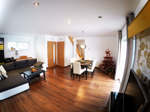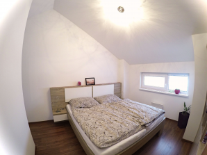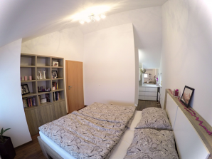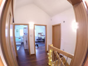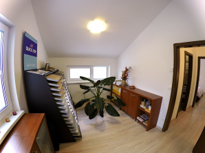 - laminátová podlaha nebo koberec v obytných místnostech a na chodbě v podkroví, v ostatních místnostech dlažba