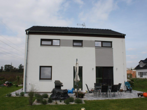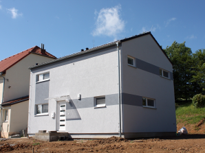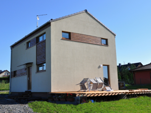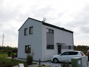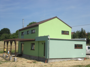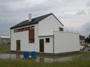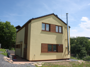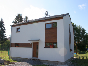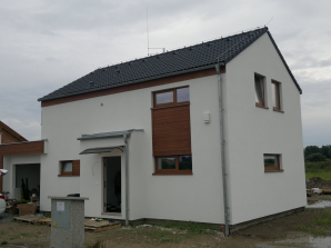 - obvodové stěny s vnitřní izolací 120 + 40 mm a vnější termofasádou 150 mm uzavřenou strukturní barevnou omítkou