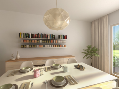 - elektroinstalace od skříně domovního rozvaděče včetně dodávky domovního rozvaděče, v místnostech jsou zabudovány zásuvky a vypínače bílé barvy