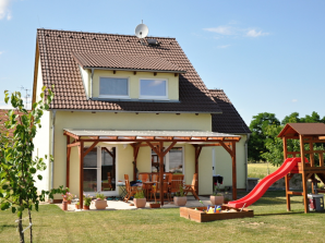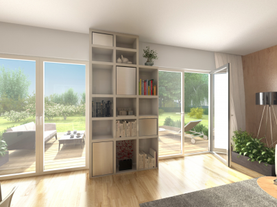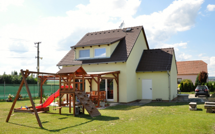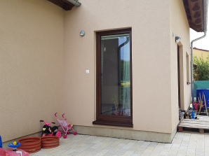 - okna a terasové dveře vyrobené z 6-ti komorových PVC profilů v bílé barvě s izolačním trojsklem, součinitel prostupu tepla celého okna Uw ≤ 1,0 W/(m².K)