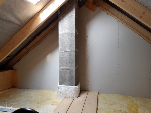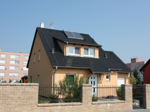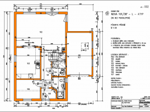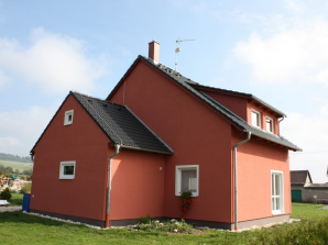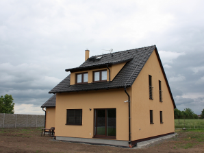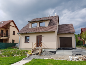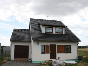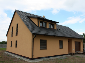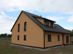 - obvodové stěny s vnitřní izolací 120 + 40 mm a vnější termofasádou 150 mm uzavřenou strukturní barevnou omítkou